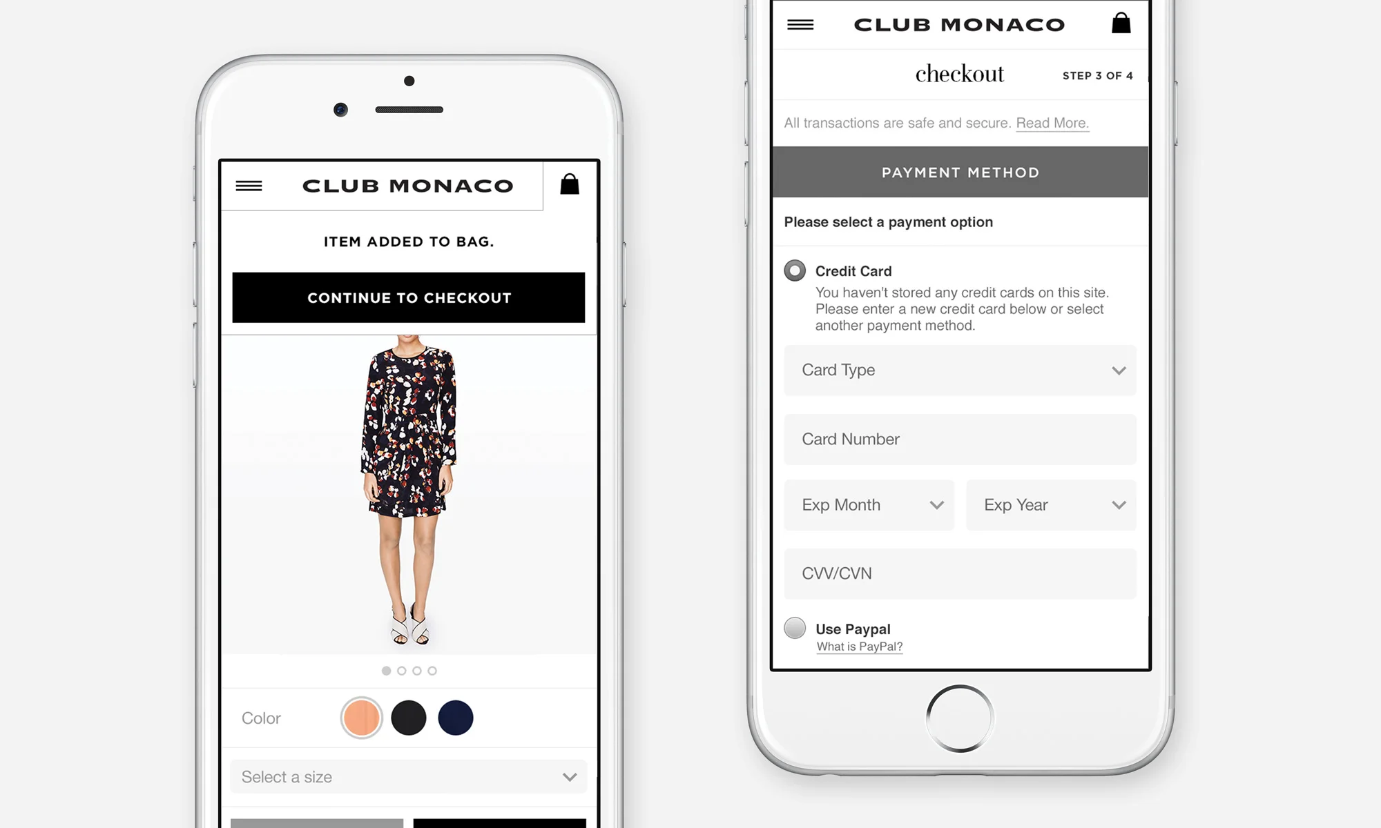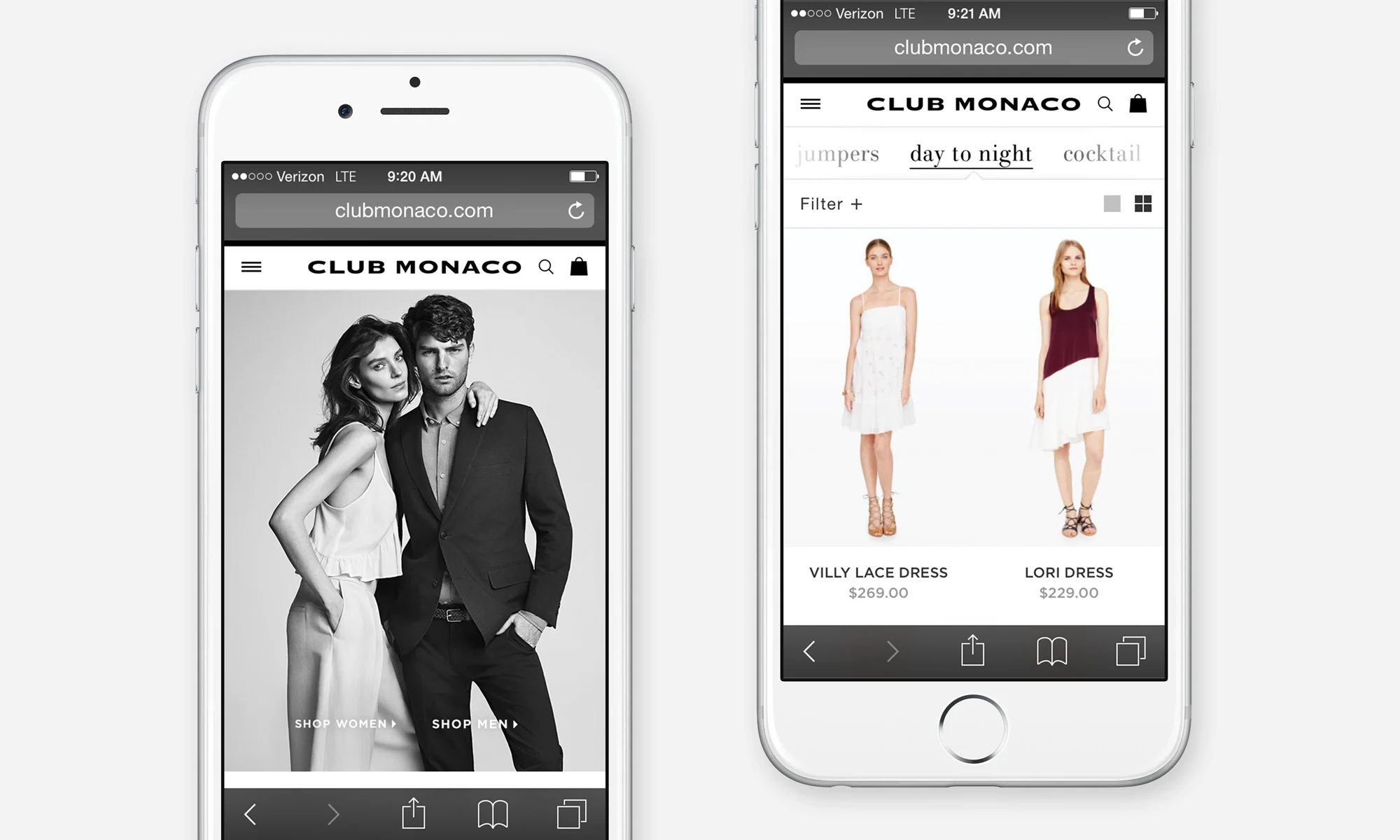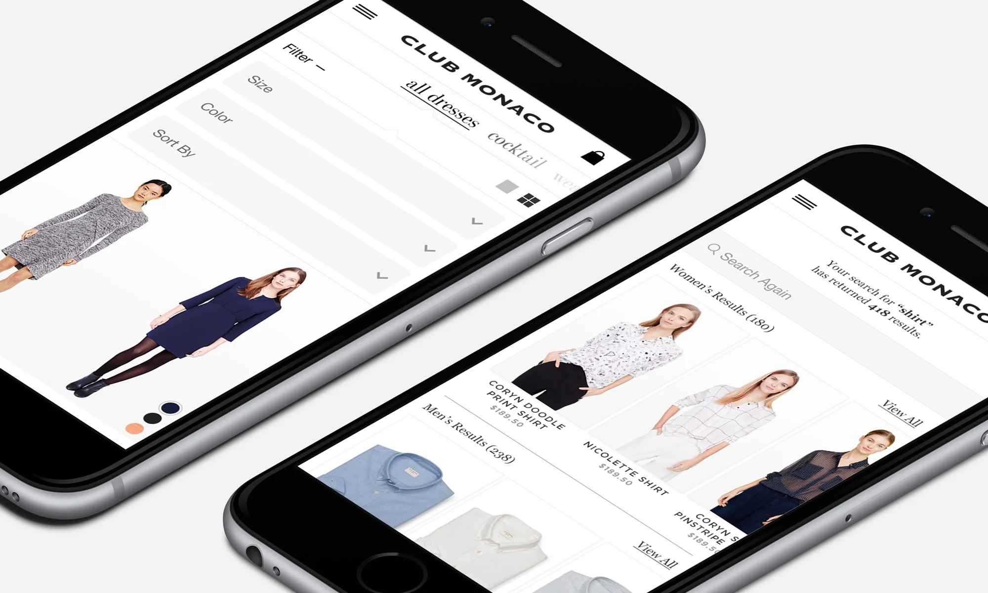 Mobile optimized e-commerce experience for clubmonaco.com.